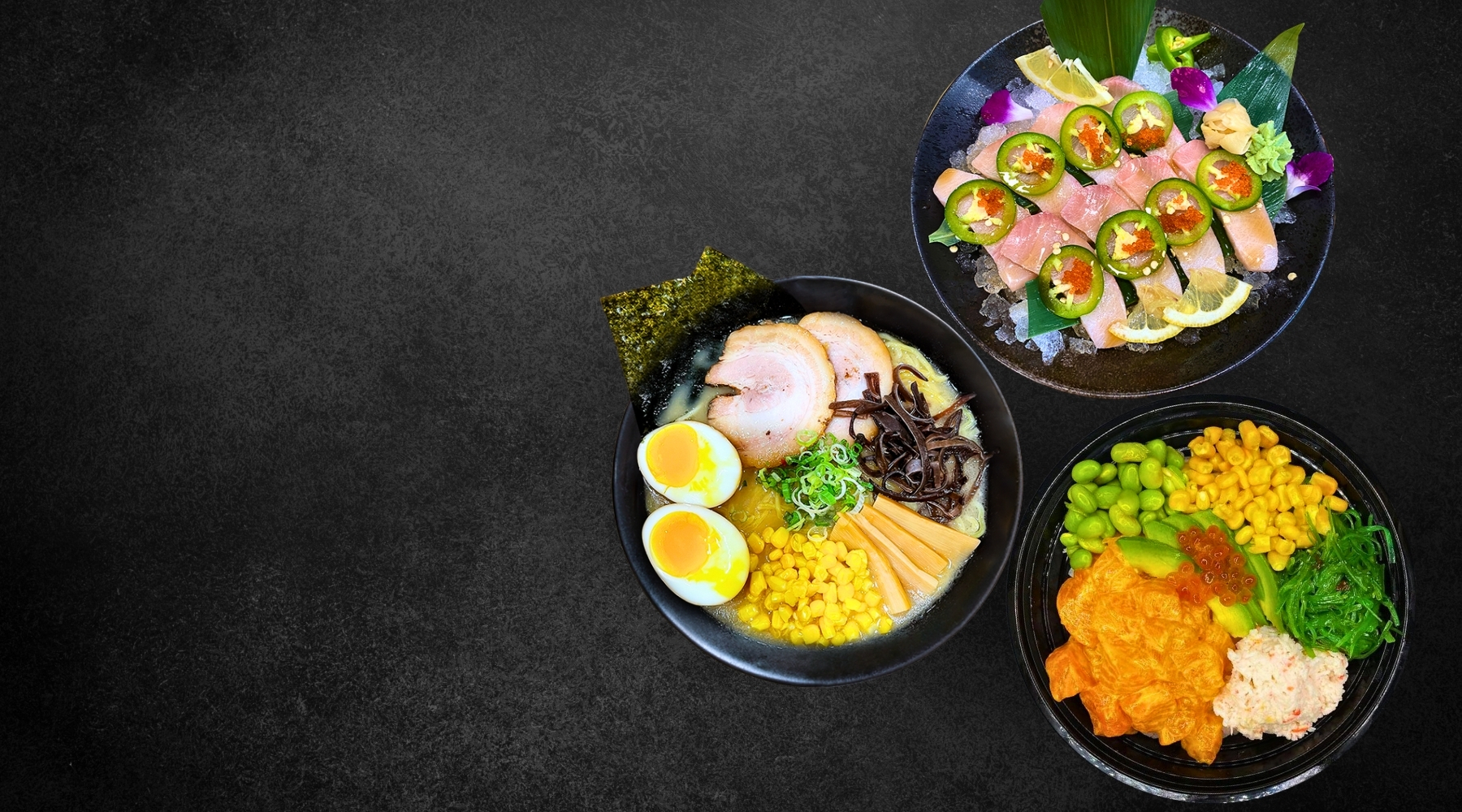세련된 공간에서 즐기는 정통 일식 스시. 시그니처 댄싱 드래곤 롤과 스파이시 연어 포케.